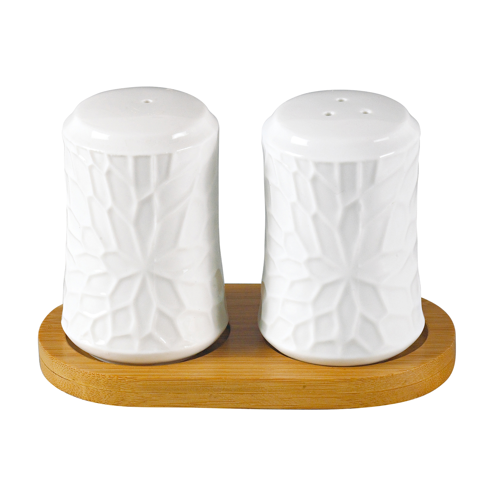 Shallow 2 Pcs Salt/Pepper Set W/Bamboo Stnd
