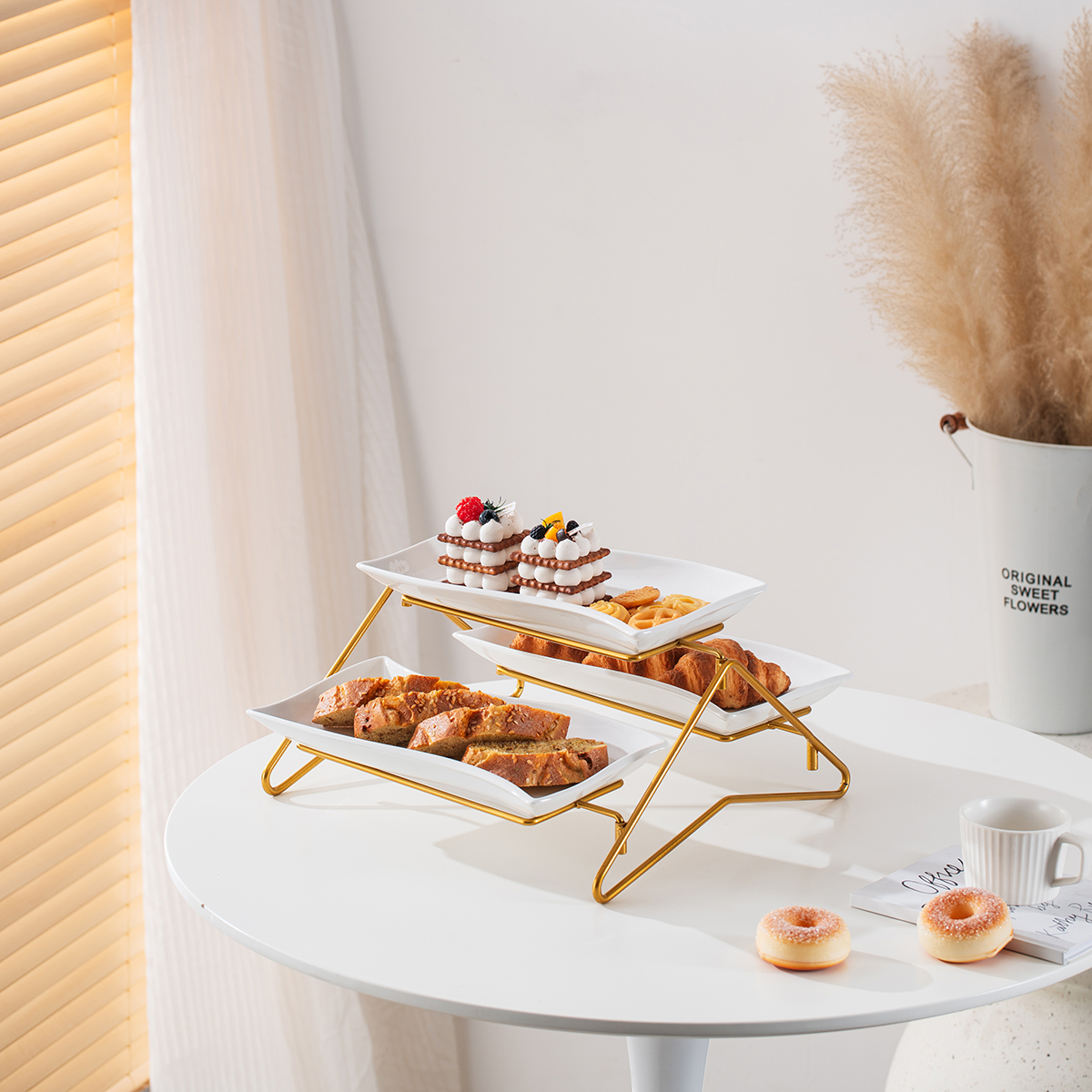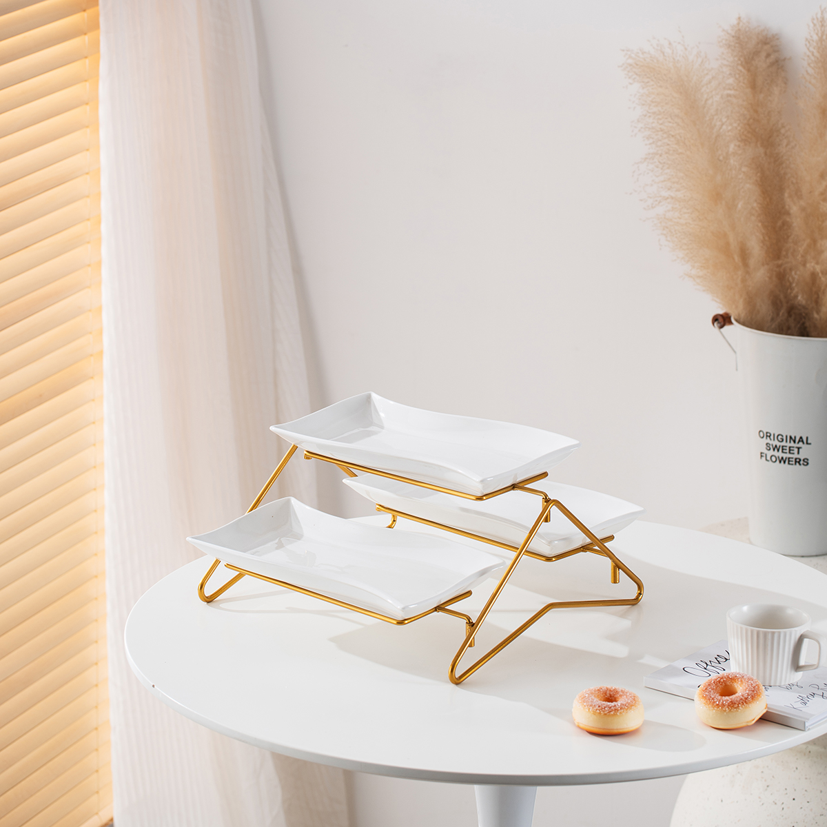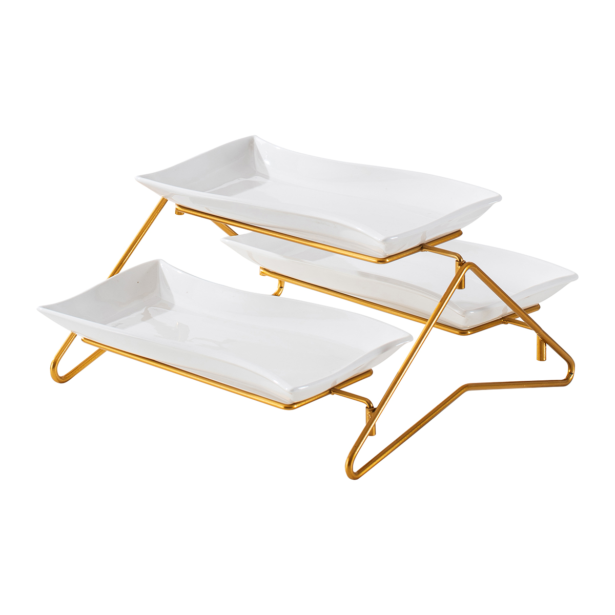 Shallow 2 Tier Rect. Plate With Gold Stand