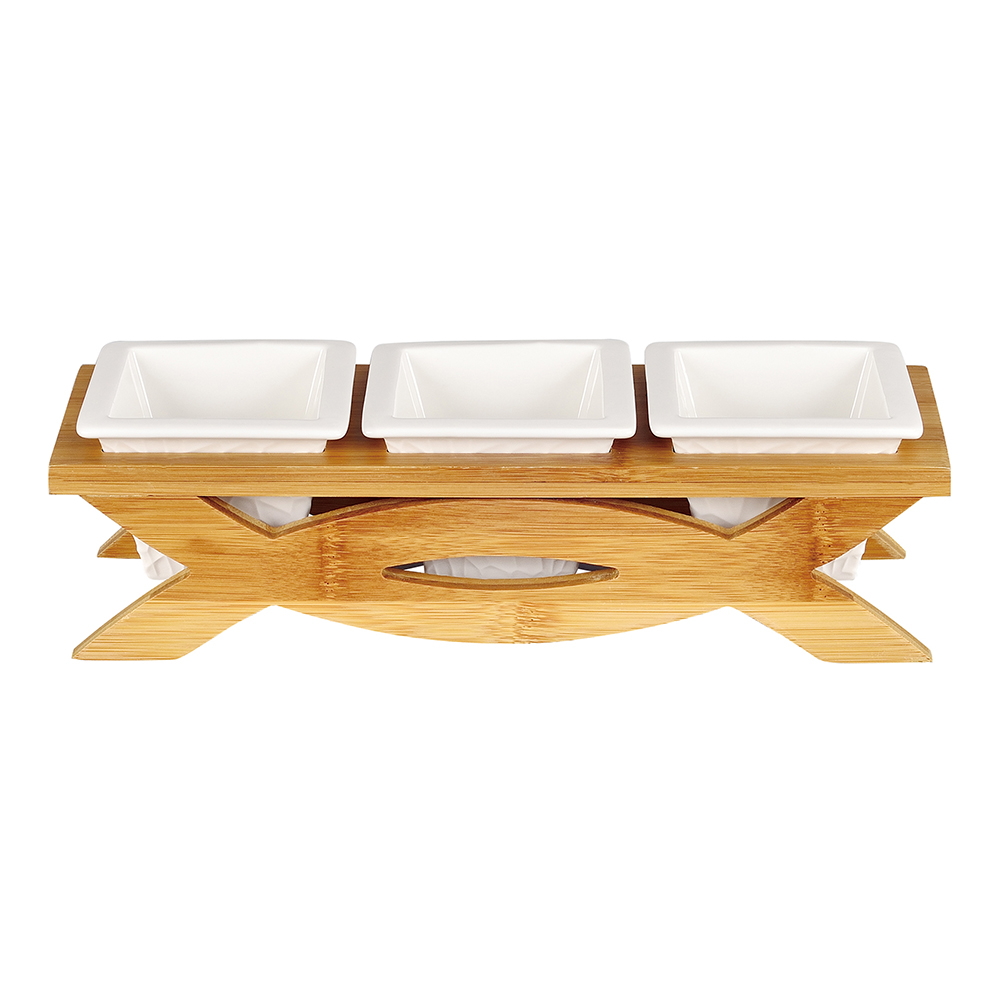 Shallow 3 Compartment Serving Bowl with Bamboo Stand (New)