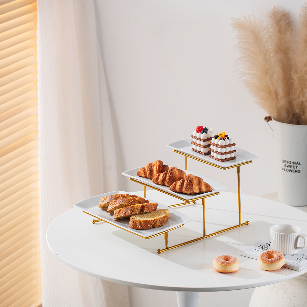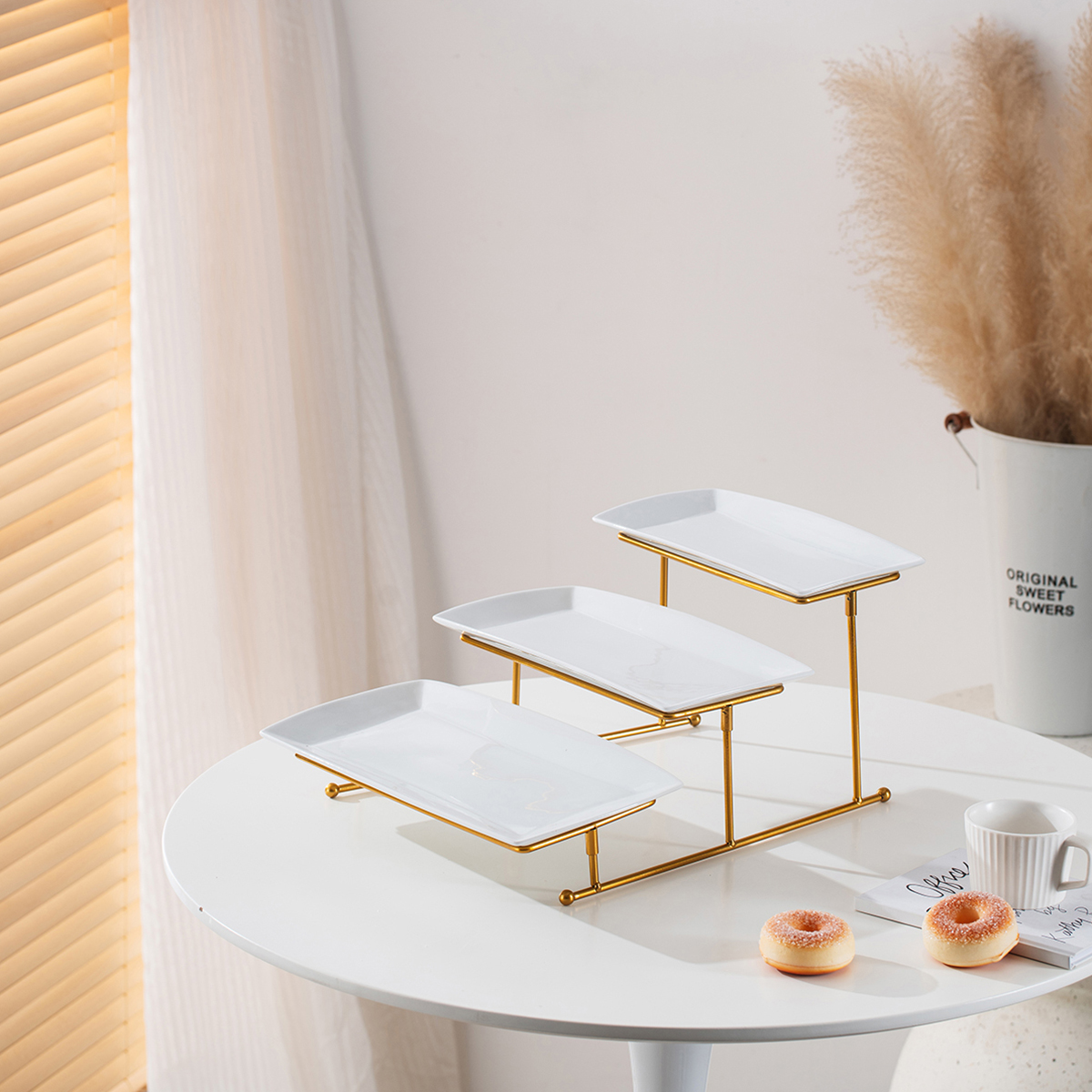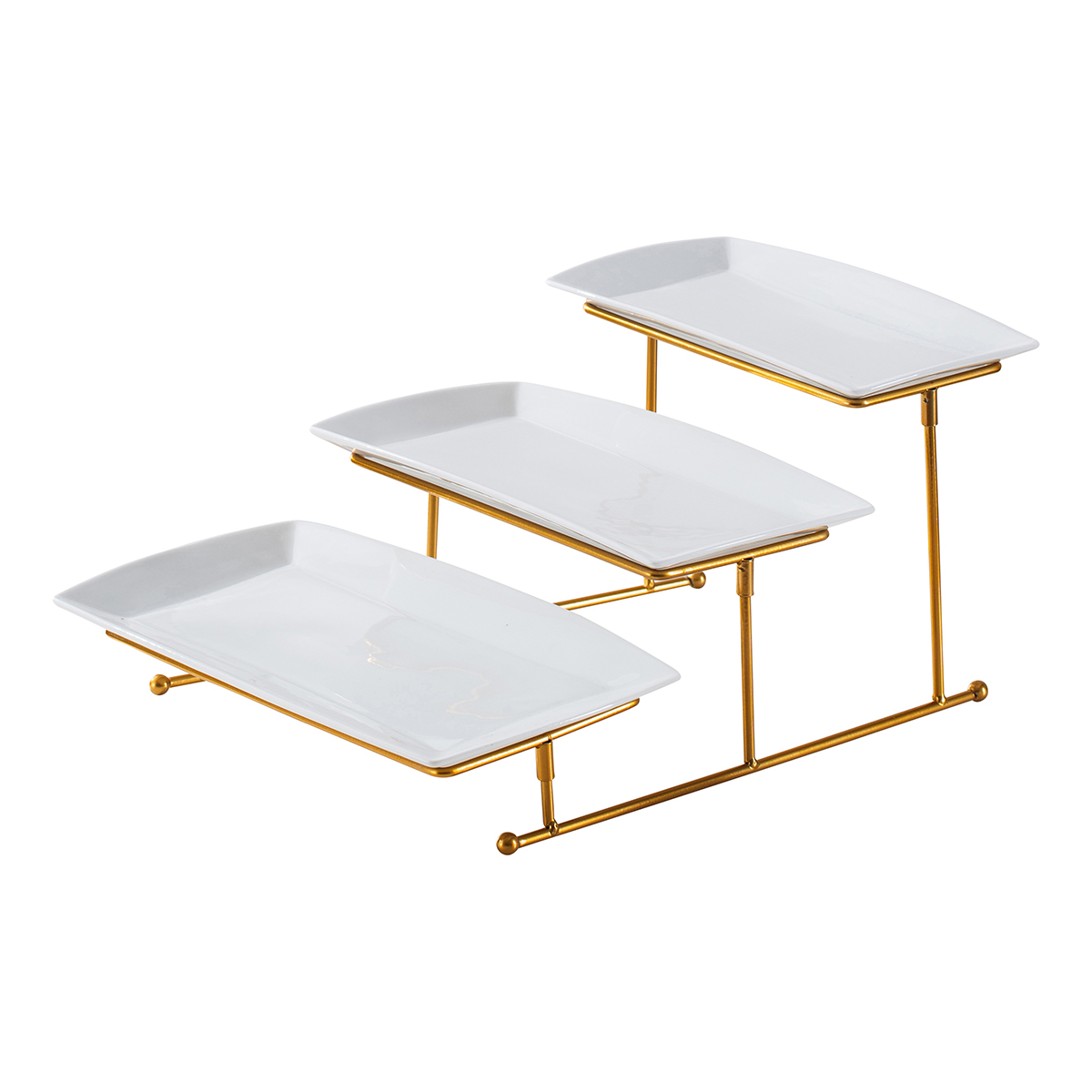 Shallow 3 Tier Rect. Plate With Gold Stand-2070