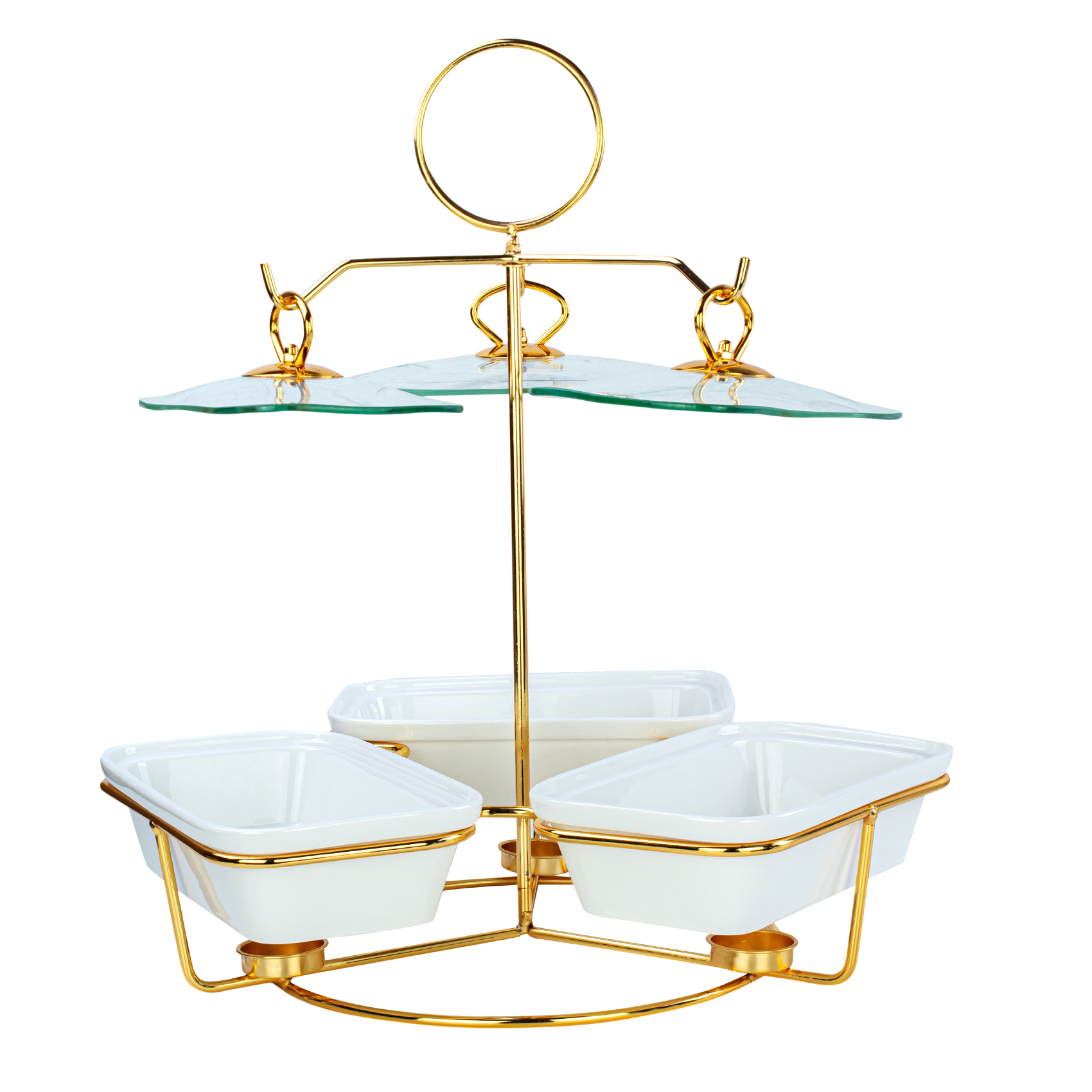 Shallow 9 inch Rectangle Casserole with Candle Stand, 3 Pieces, White