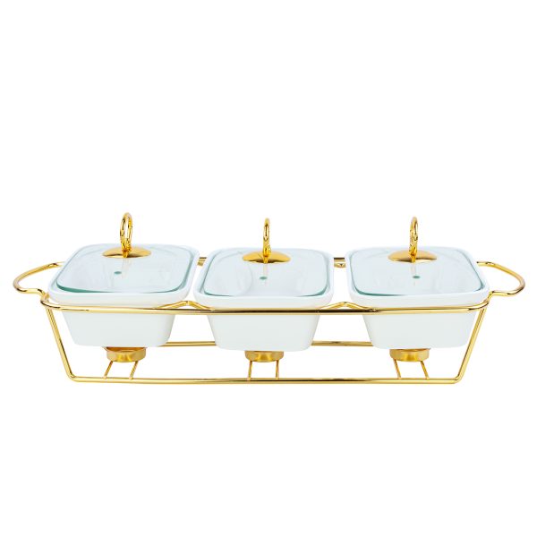 Shallow 9 inch Rectangle Casserole with Candle Stand, 3 Pieces, White