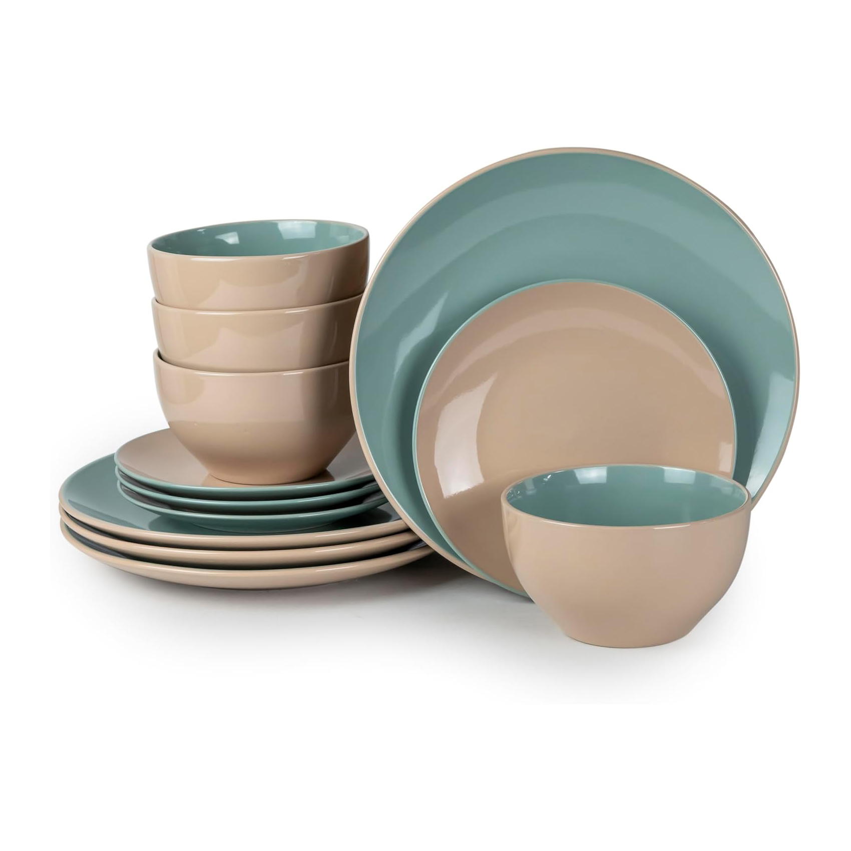 Shallow Moire Dinner Set – Two Tone, Multicolor, 12 Pieces