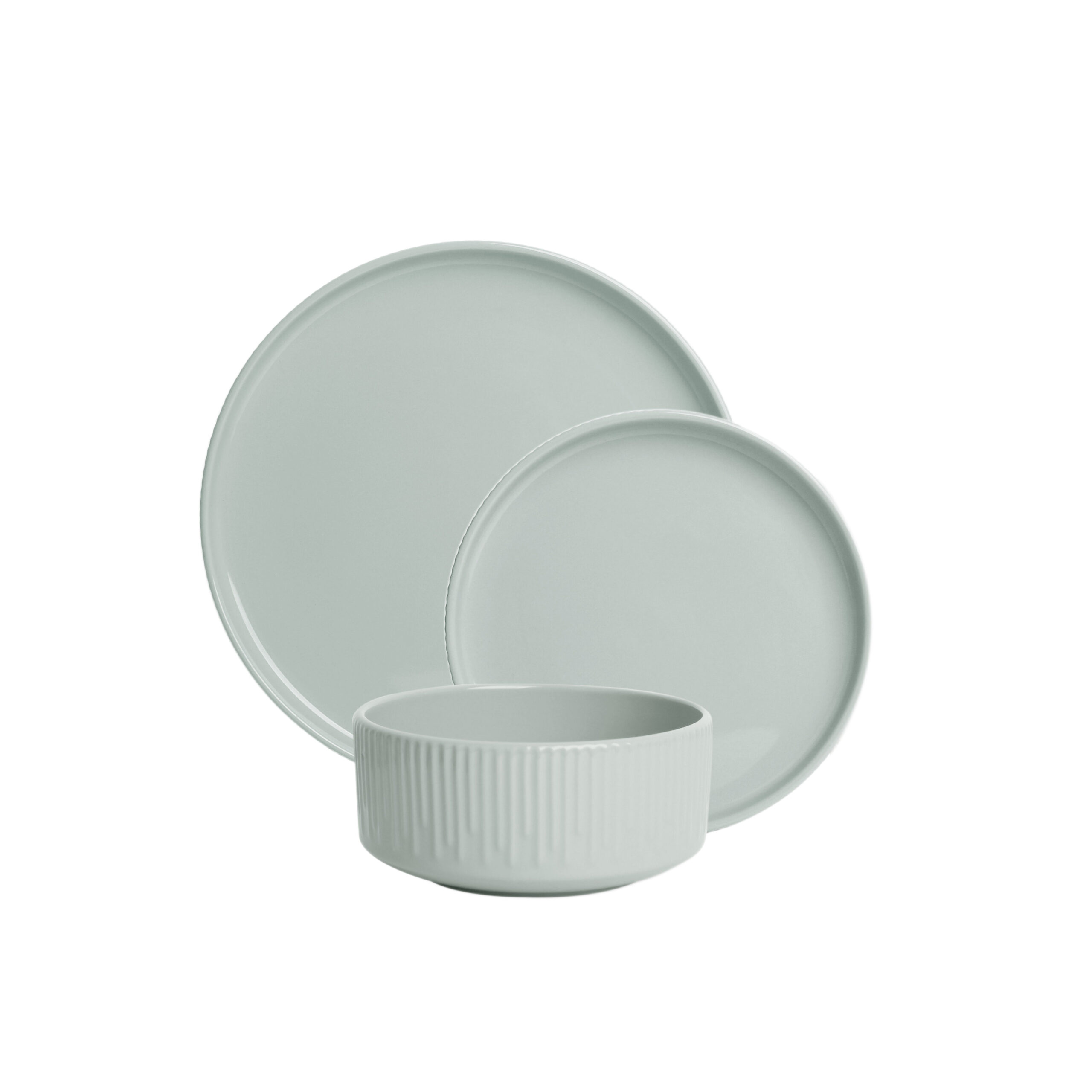 Shallow Stoneware HARPER 12-Pc Dinner Set-Elegant Green Crockery|4×10.5 Dinner Plates,4×7.5 Side Plates & 4×5.5 Deep Bowls