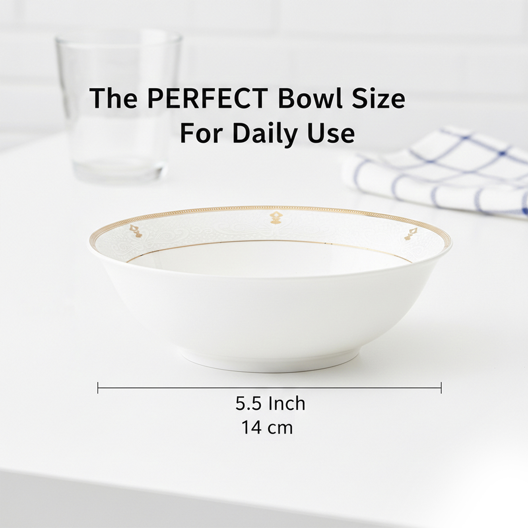 Crafted from premium New Bone China, the bowl is lightweight yet durable, offering a smooth, luminous surface that enhances presentation while remaining comfortable for daily use. The 14 cm size is ideal for soups, cereals, desserts, sides, dips, and accompaniments—making it a versatile essential for home dining, brunch tables, and elegant hosting.