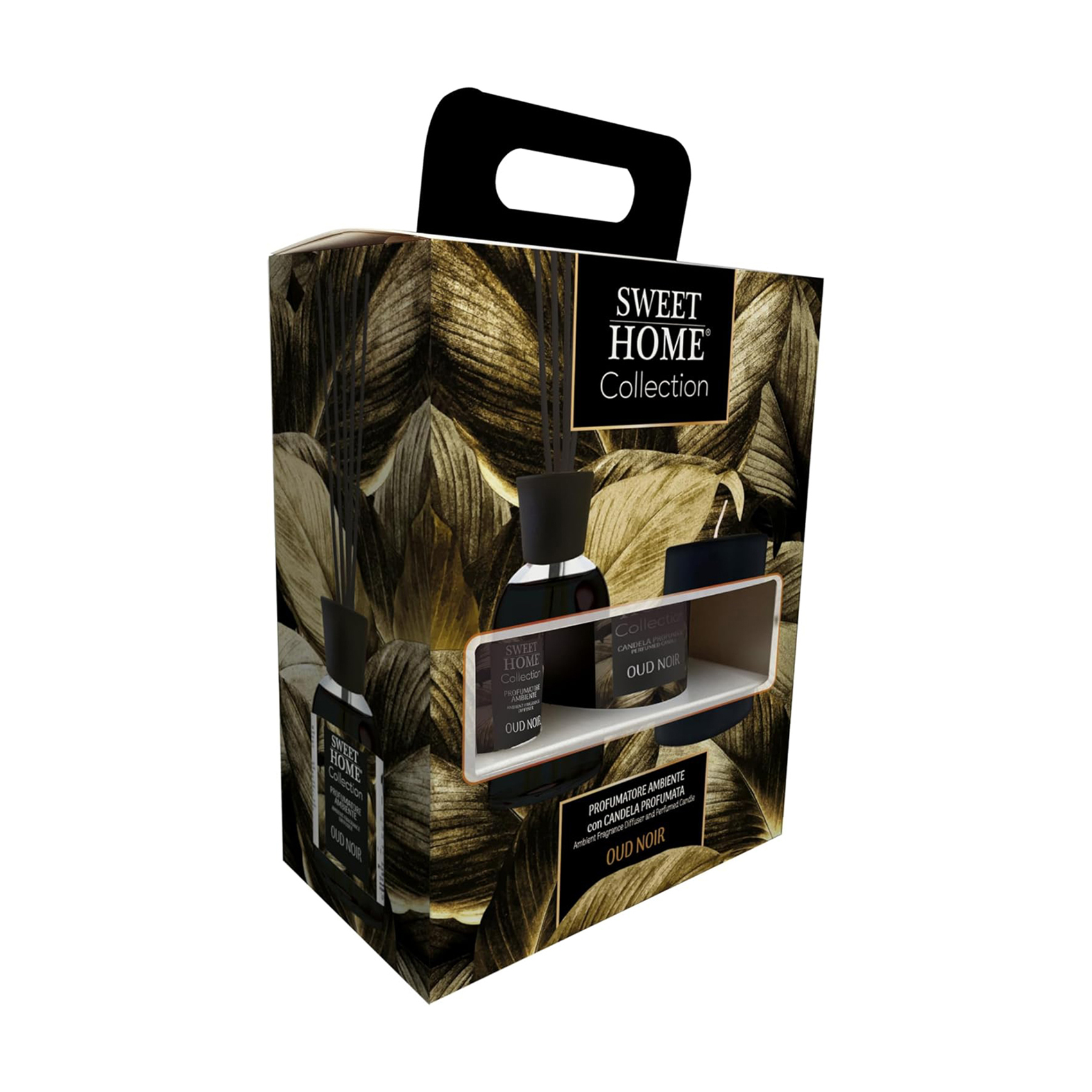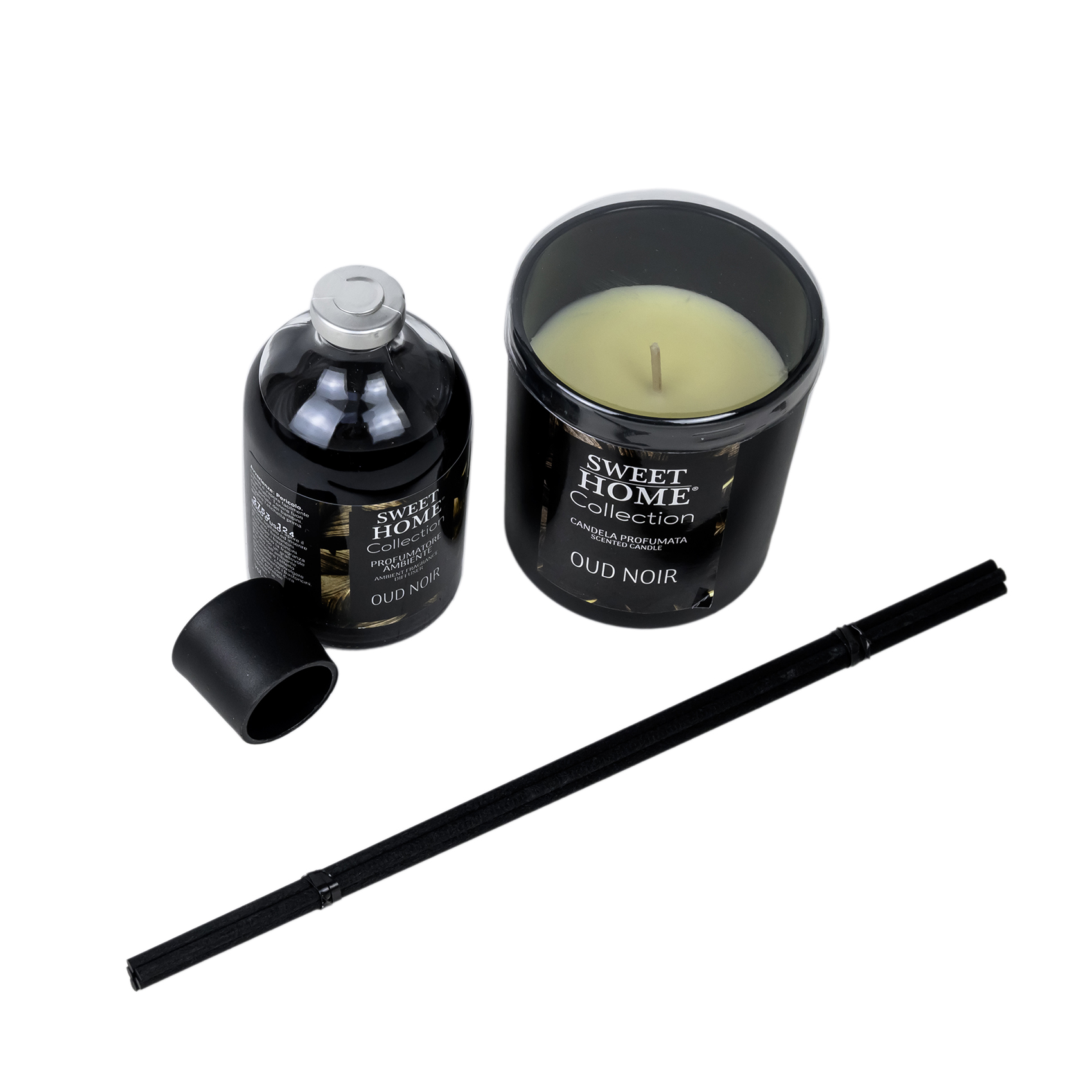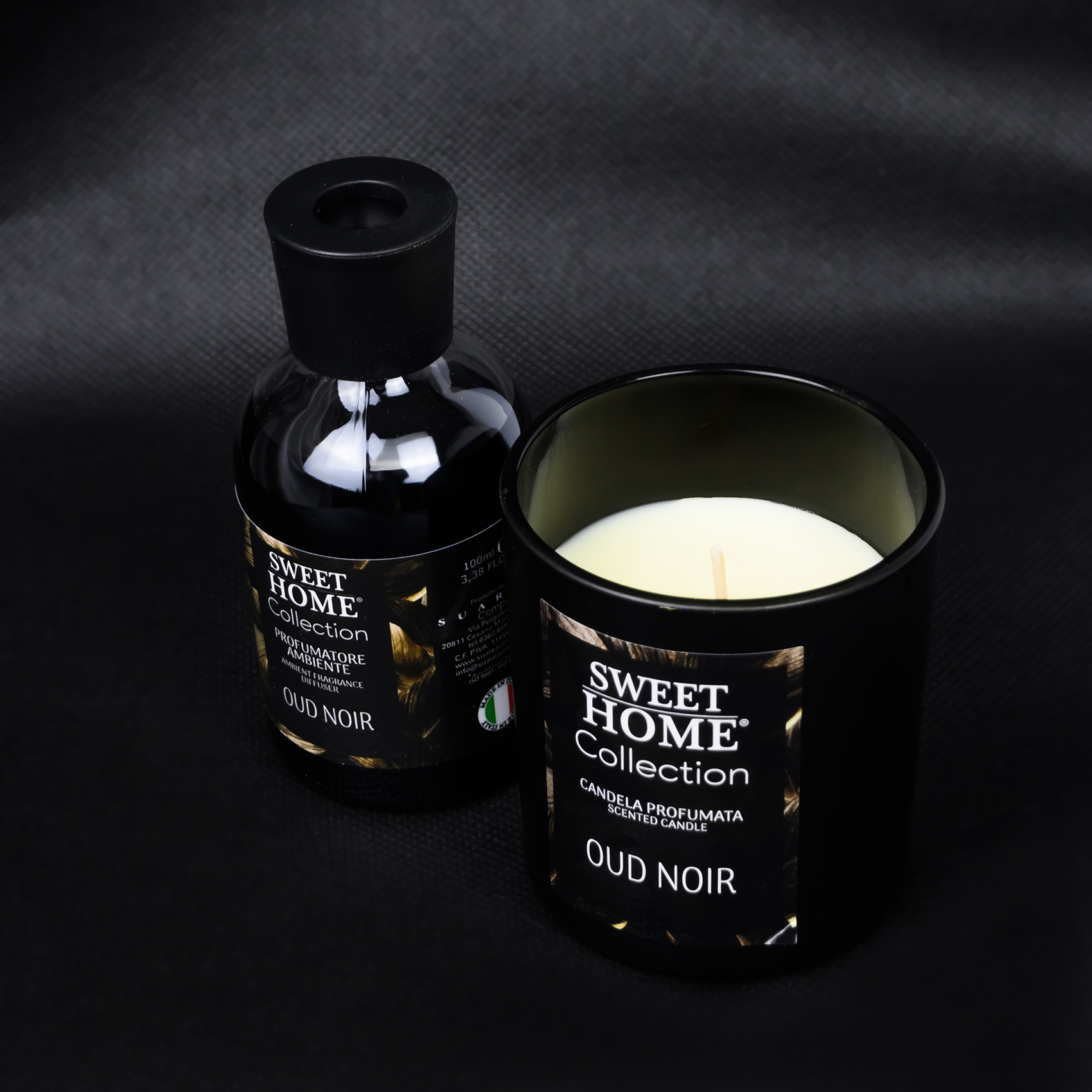 Sweet Home Ambient Fragrance 100ml + Glass Candle 280g (Groud Noir) | Luxurious Home Fragrance Combo | Long-Lasting Aromatic Experience | Elegant Gift for Living Room, Bedroom & Office