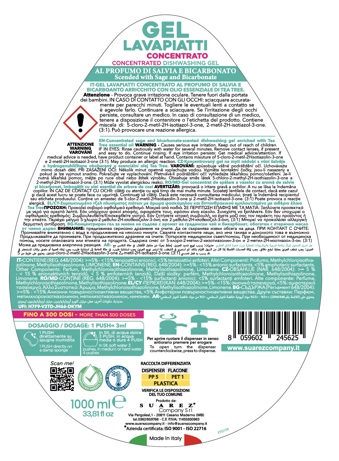 Sweet Home Dishwashing Gel Sage & Bicarbonate, 1000ml | Powerful Grease & Stain Remover | Eco-Friendly & Gentle on Hands | Fresh Herbal Sage Aroma | Sparkling Clean Dishes