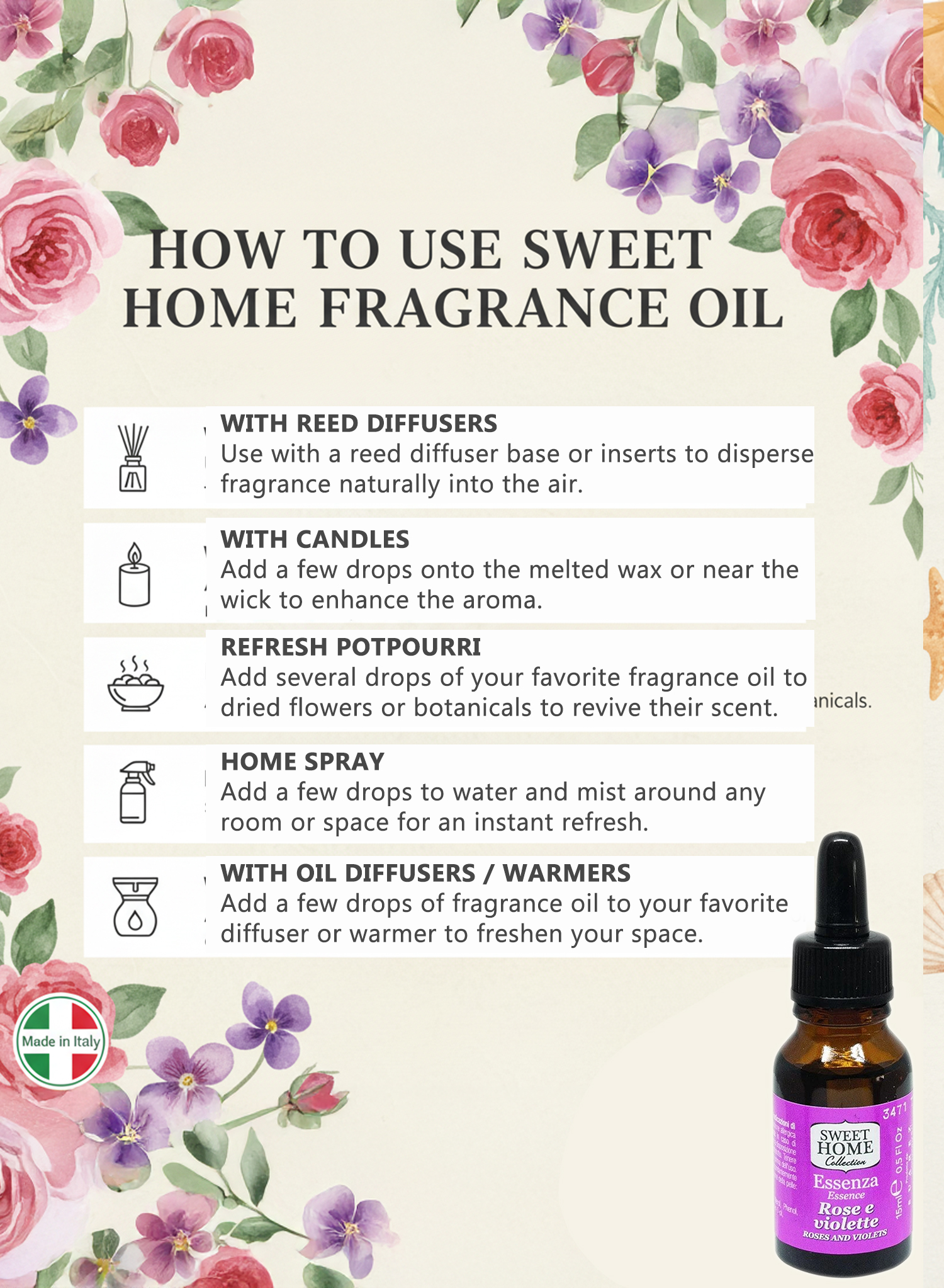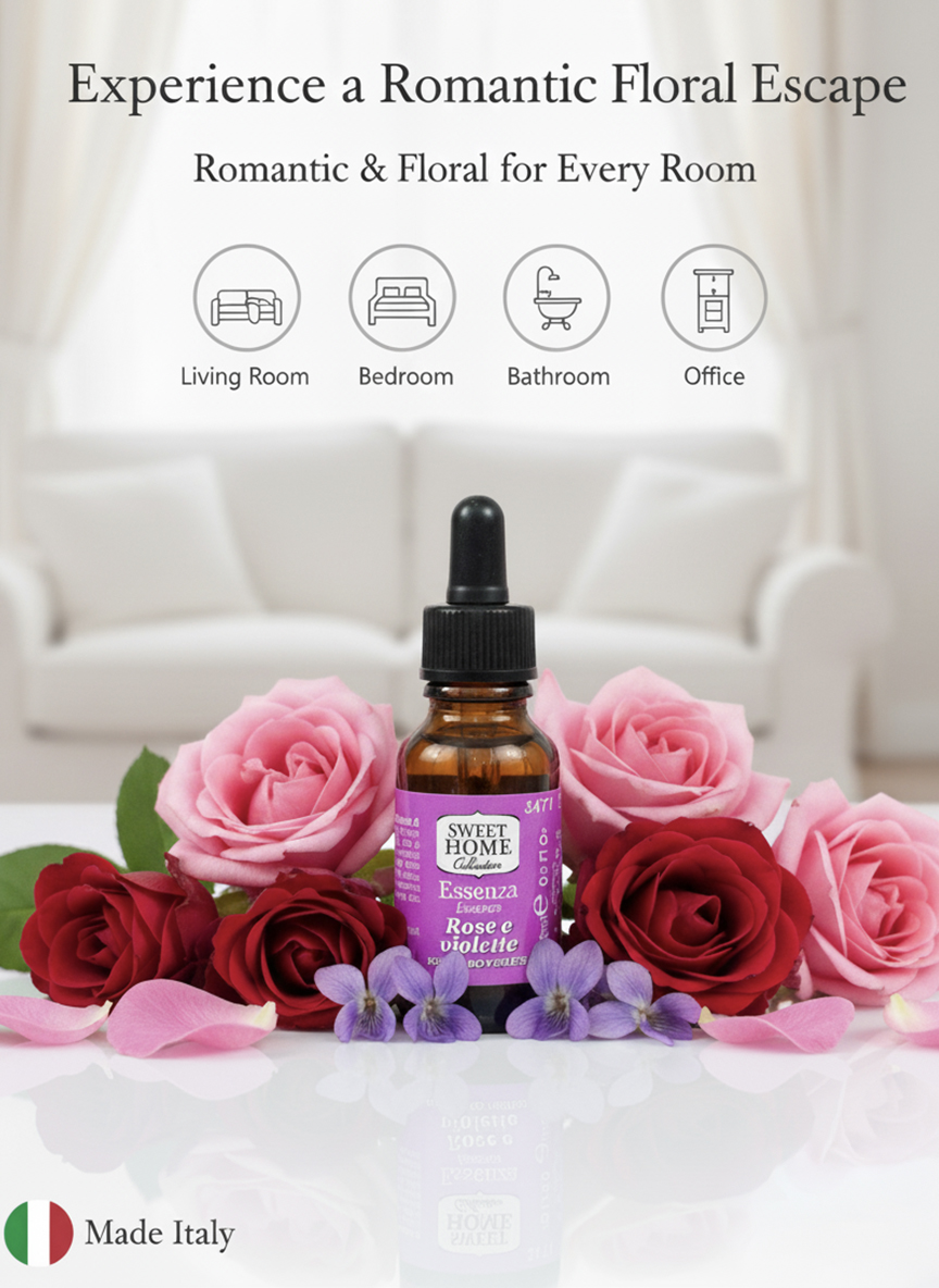 Sweet Home Essences Roses & Violets Fragrance Oil, 15ml | Romantic Floral Aroma for Diffusers, Candles & Home Fragrance | Long-Lasting Fresh Rose & Violet Blend for a Luxurious, Soothing Ambience
