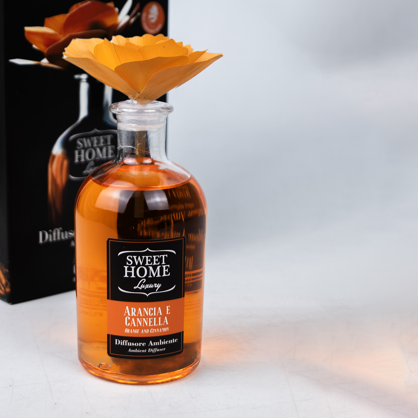 Elevate your home with the luxurious, warm, and inviting aroma of Sweet Home Luxury Ambient Fragrance Orange Rose & Cinnamon, 250ml. This sophisticated fragrance blends the zesty brightness of orange, the romantic floral elegance of rose, and the warm, comforting spice of cinnamon, creating a rich, cozy, and uplifting aroma that fills your space with joy and serenity. Designed for reed diffusers, aroma lamps, and home fragrance displays, this 250ml bottle ensures long-lasting, consistent diffusion, allowing your home to stay refreshed and cozy throughout the day. Its perfectly balanced scent transforms bedrooms, living rooms, offices, or even spa areas into luxurious, inviting retreats. Crafted from premium-quality aromatic ingredients, Sweet Home Luxury Ambient Fragrance is non-toxic, alcohol-free, and safe for daily use, offering a clean, long-lasting, and sophisticated fragrance for any occasion. Whether for relaxing evenings, festive celebrations, or daily home ambience, this fragrance exudes elegance and warmth.