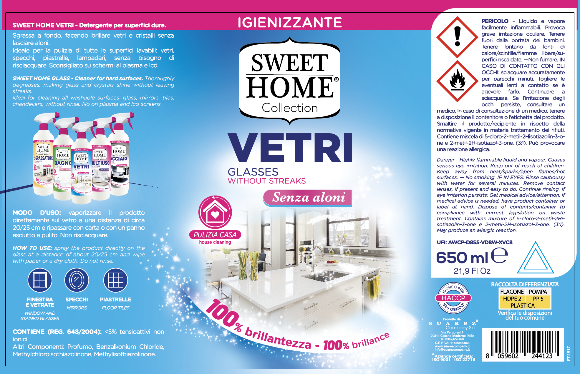 Achieve crystal-clear glass and windows with Sweet Home Vetri Spray 650ml (Trigger). This premium glass cleaner is specially formulated to remove fingerprints, smudges, dust, and dirt quickly, leaving surfaces sparkling and streak-free. Its easy-to-use trigger spray ensures precise application, reducing waste and making cleaning efficient and convenient. Suitable for glass windows, mirrors, glass doors, display surfaces, and other reflective surfaces, it restores clarity and brilliance effortlessly. Infused with a subtle, refreshing fragrance, it leaves your spaces smelling fresh and clean while enhancing the home environment. Made with eco-friendly, biodegradable ingredients, this spray is safe for daily use, family-friendly, and environmentally responsible. Transform your cleaning routine with fast, efficient, streak-free glass cleaning, giving your home or office a professional shine and fresh aroma every time.