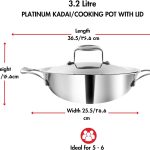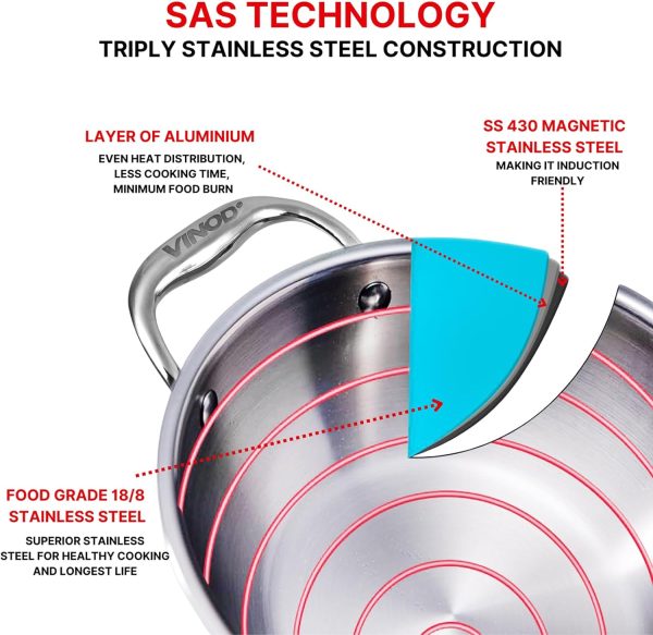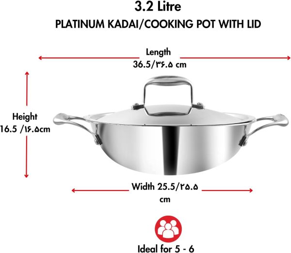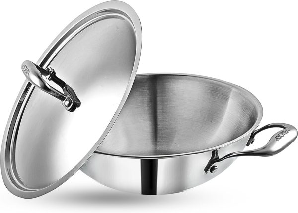 Vinod Platinum Triply Stainless Steel Kadai with Lid – 26 cm, 3.2 L (Induction Friendly)
