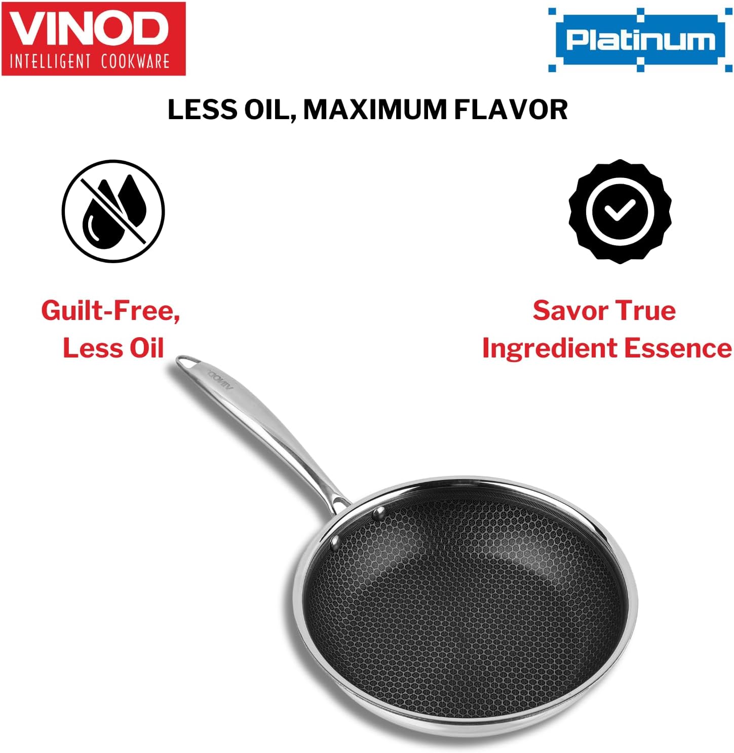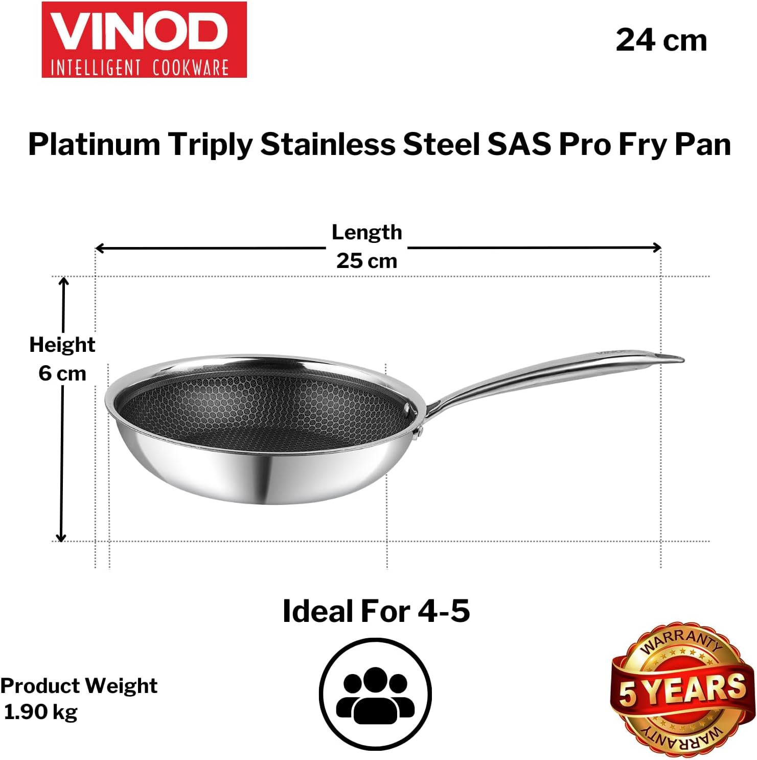 Vinod Platinum Triply Stainless Steel SAS Pro Fry Pan – 24cm, Silver (Induction Friendly)