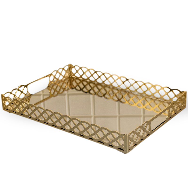 Zeyve Knit Pattern Laser Tray Gold 40X30X6Cm